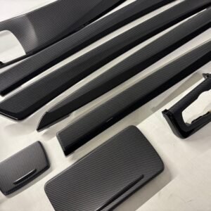 OEM BMW Interior Trim Set Refurbished in Carbon Hydrodipped. Finsihed with hard matte coat. Resistant for small scratches! If you want Individual design or you have questions – please, do not hesitate to contact us!